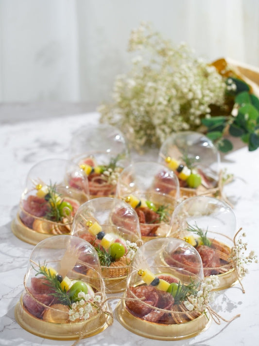 Charcuterie Cake Dome Containers with Wooden Forks and Picks for Party Favor Cups, Wedding, Birthday, Catering Event, or Party